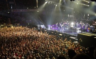 Die PSD Bank Nürnberg ARENA mit einer Kopfbühne und Stehplätzen im Innenraum.