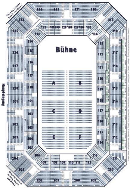 | Mittelbühne nur Sitzplätze (z. B. Boxkampf) | bis 9.400 Plätze |